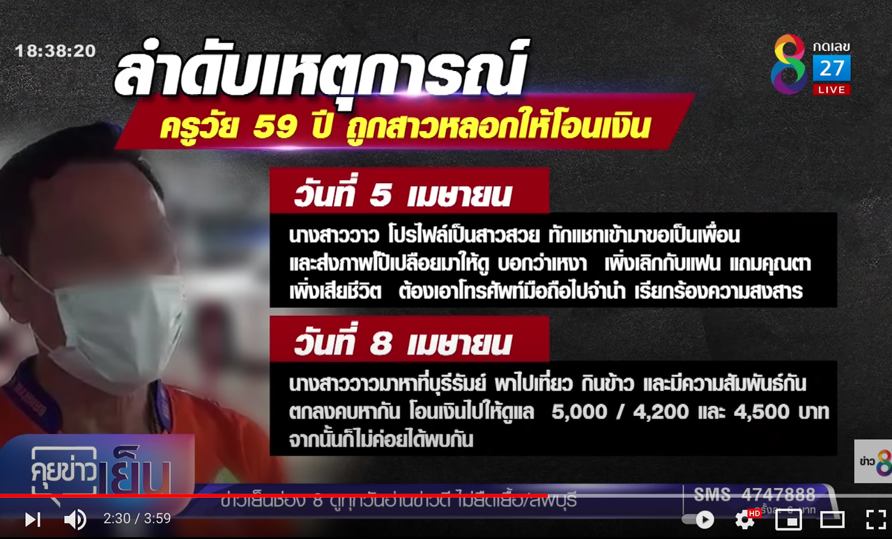 #タイのニュース #タイの三面記事 #ブリーラム #Facebookで騙される #騙された教師 #アカウント乗っ取り #コロナで困窮 #猥褻画像を送られる #ข่าวไทยแปลภาษาญี่ปุ่น #SNSで犯罪 #Facebook友達が犯罪者 #ครูถูกสาวหลอกให้รัก