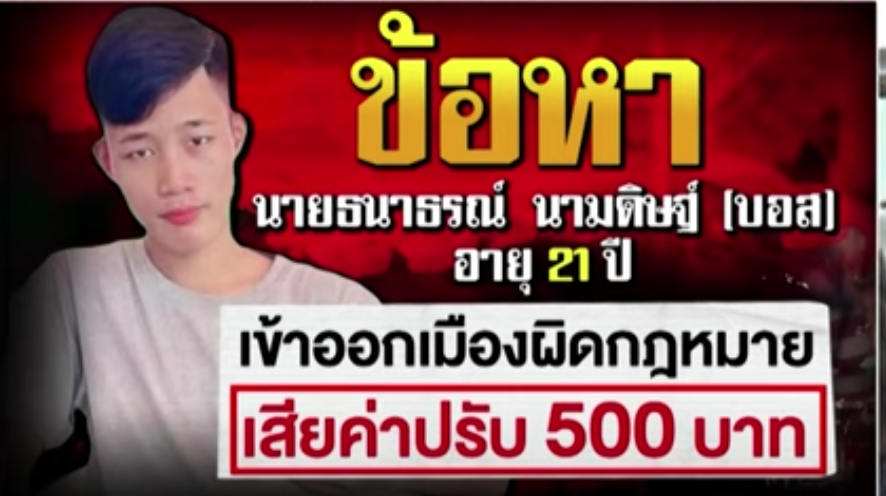 違法に出国した旨の罰金500バーツ(約2000円)を
