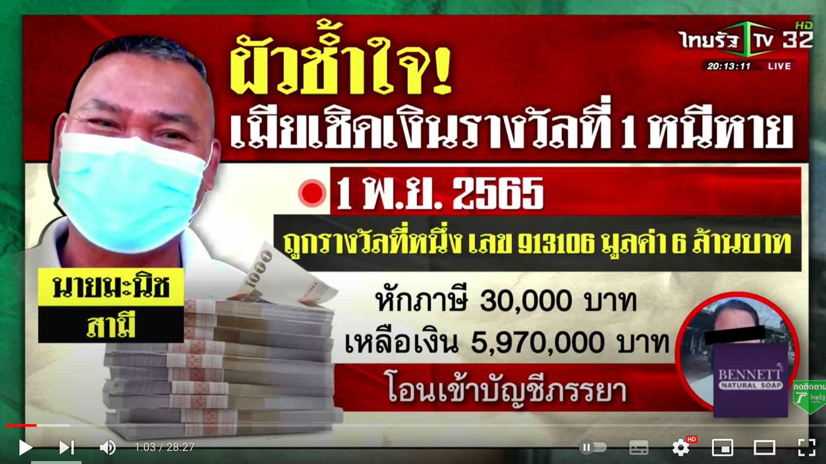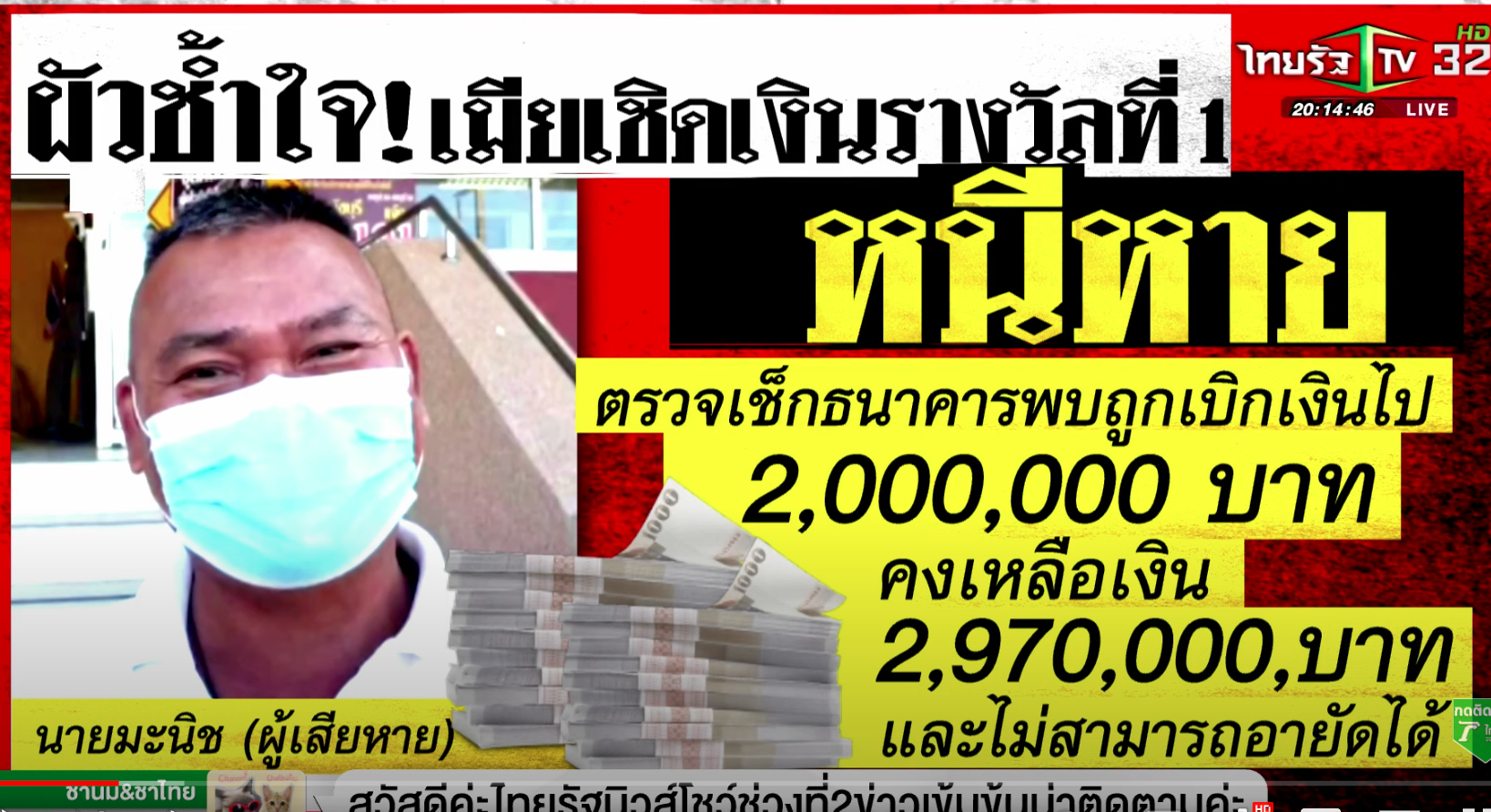 当選金のうち100万バーツを妻の口座から