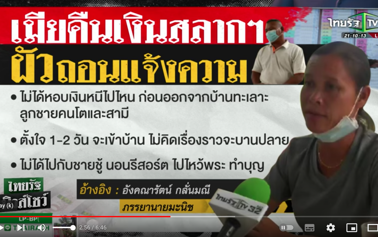 妻のダーオはまだ当選金を返していない。