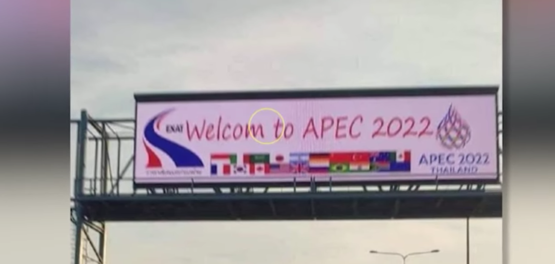 ん?なんか変(笑道路に掲げられたAPECの看板のスペルミスに